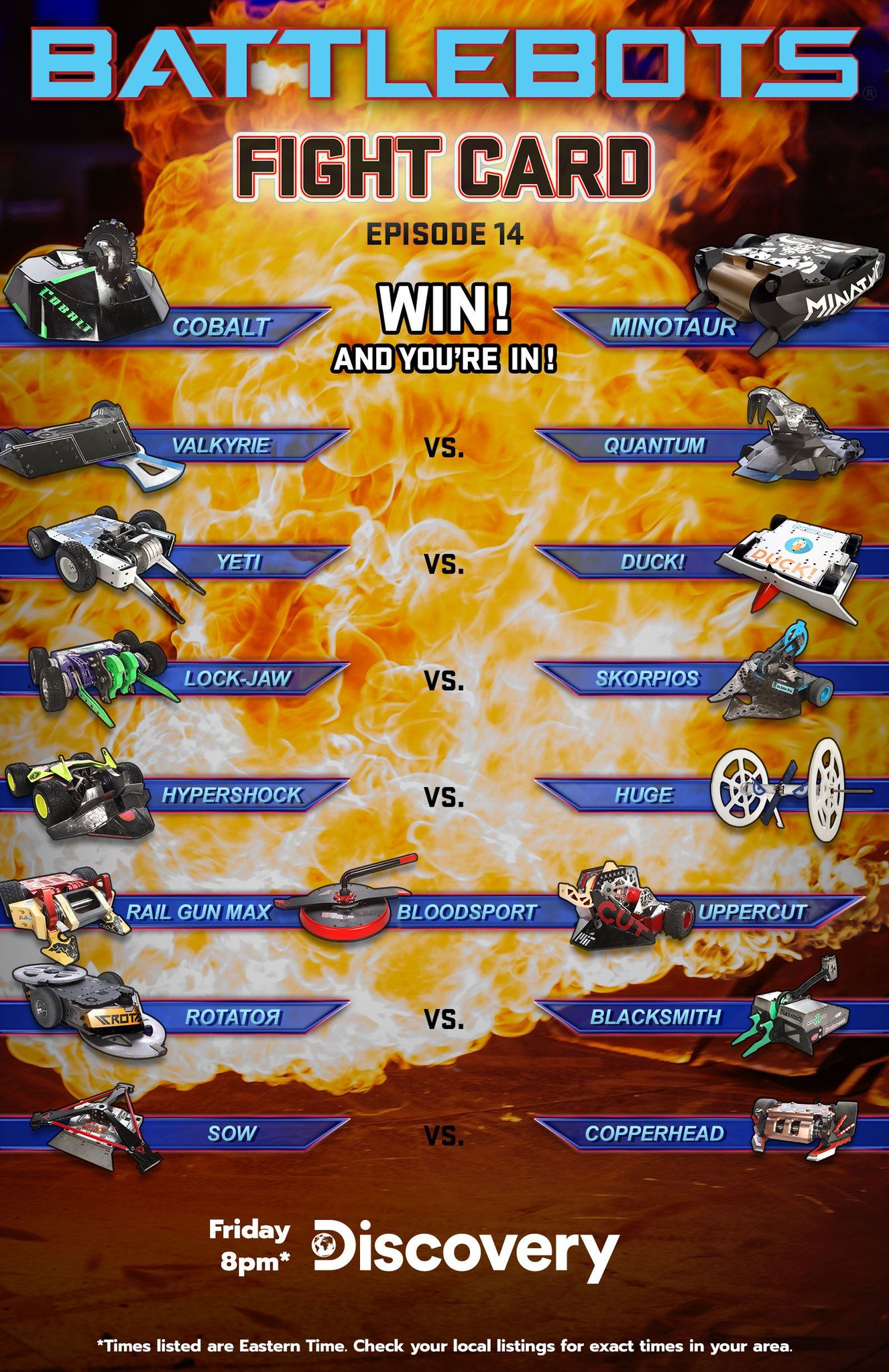 Battlebots 2019 Bite Force Vs Lockjaw . Battlebots On Twitter Behold Botfans The Fight Card For The Amazonremars Battlebots Challenge Is Revealed 10 All Star Battlebots Fight It Out Live On Twitch This Thursday June 6Th At 8 45Pm Pt